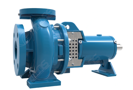MCP-FM series end suction pumps are frame mounted pump. They are suitable for regional heating, general water supply, industry, etc. Back pull-out design allows maintenance of bearing frame without disturbing the suction and discharge piping. Eight casing discharge positions are possible. The enclosed impeller ensures the highest efficiency. The impeller is hydraulically balanced, which reduces axial thrust and increase bearing life. Bronze wear rings are easily replaced and prevent casing wear.